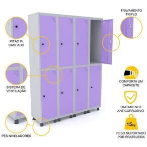 ROUPEIRO DE AÇO 4M 08 PORTAS PITÃO PANDIN - CINZA/LILÁS