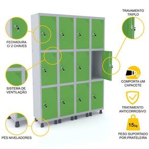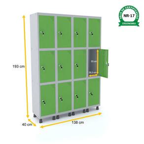 ROUPEIRO DE AÇO 4M 12 PORTAS FECHADURA PANDIN - CINZA/VERDE