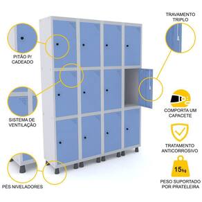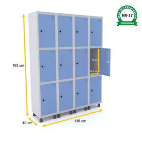 ROUPEIRO DE AÇO 4M 12 PORTAS PITÃO PANDIN - CINZA/AZUL DALÍ