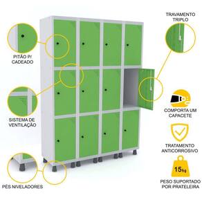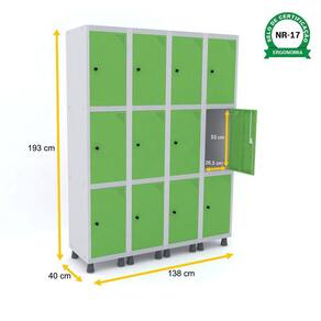 ROUPEIRO DE AÇO 4M 12 PORTAS PITÃO PANDIN - CINZA/VERDE