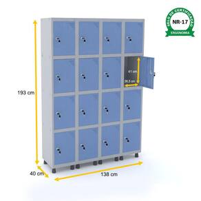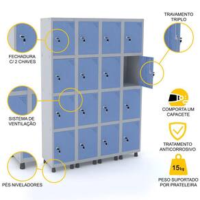 ROUPEIRO DE AÇO 4M 16 PORTAS FECHADURA PANDIN - CINZA/AZUL DALÍ