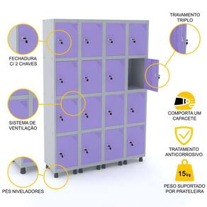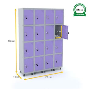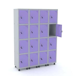 ROUPEIRO DE AÇO 4M 16 PORTAS FECHADURA PANDIN - CINZA/LILÁS