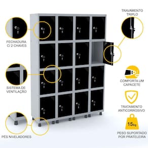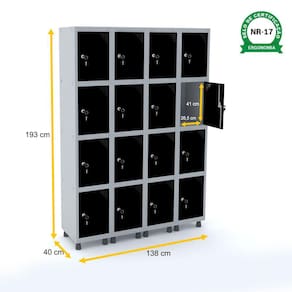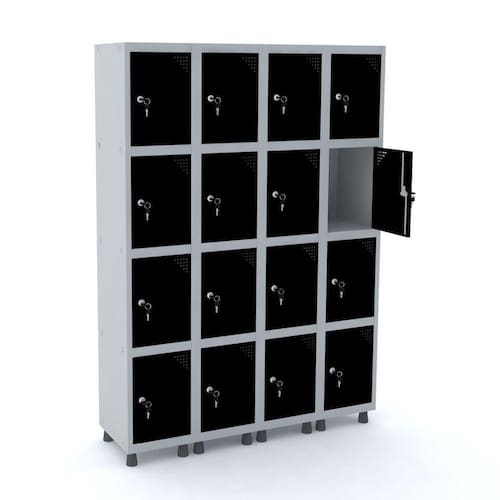 ROUPEIRO DE AÇO 4M 16 PORTAS FECHADURA PANDIN - CINZA/PRETO