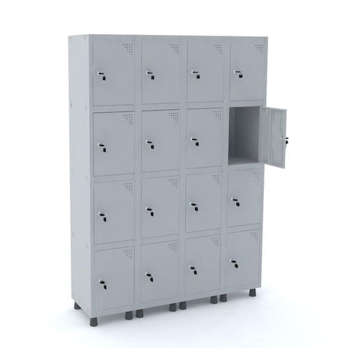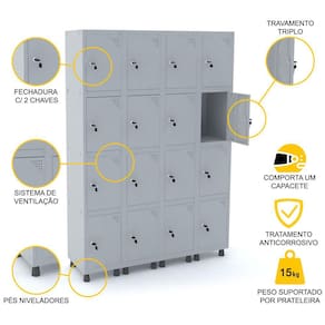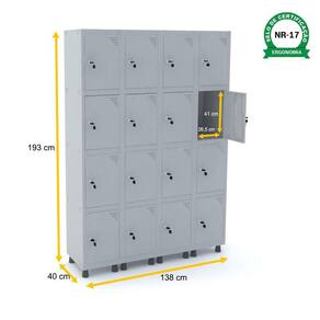ROUPEIRO DE AÇO 4M 16 PORTAS FECHADURA PANDIN - CINZA