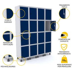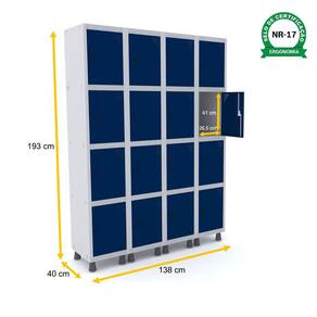 ROUPEIRO DE AÇO 4M 16 PORTAS PITÃO PANDIN - CINZA/AZUL DEL REY