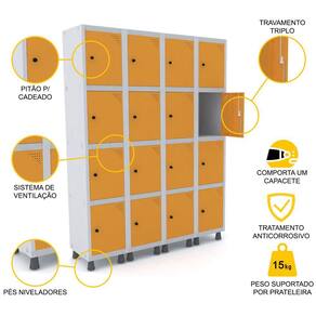 ROUPEIRO DE AÇO 4M 16 PORTAS PITÃO PANDIN - CINZA/LARANJA