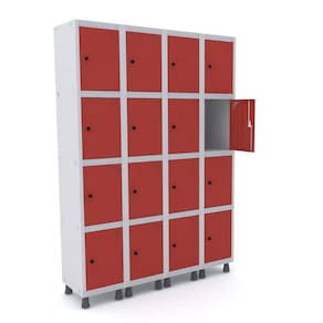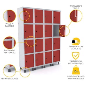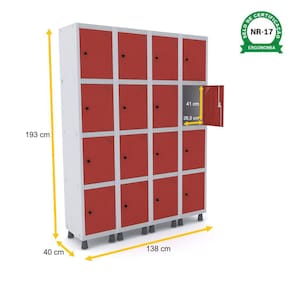 ROUPEIRO DE AÇO 4M 16 PORTAS PITÃO PANDIN - CINZA/VERMELHO