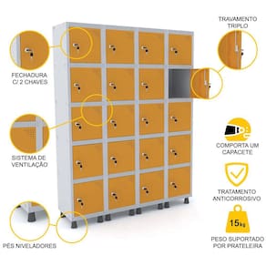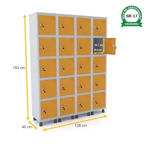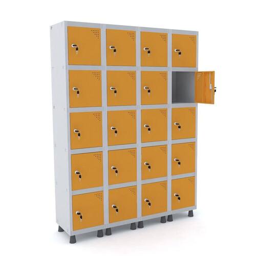 ROUPEIRO DE AÇO 4M 20 PORTAS FECHADURA PANDIN - CINZA/LARANJA