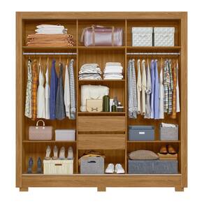 Feito em MDP, com duas gavetas com corrediças metálicas, possui três nichos sete prateleiras amplas e espaçosas podem ser utilizadas para guardar edredons, cobertores, caixas e sapatos