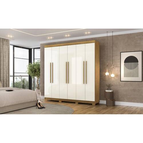 Roupeiro Elegance 6 Portas e 2 Gavetas Internas - Cor Nature Champanhe - Vila Rica - Marrom