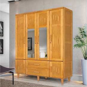 Produto dinâmico, que transita entre o clássico, um quase rústico e o contemporâneo, ao mesmo tempo sofisticado e com acabamento de extrema qualidade que o móvel merece. Pés e estrutura em madeira maciça de reflorestamento, com alta durabilidade. Peças internas como prateleiras, laterais de gavetas, fundo e contra fundo de gavetas, divisórias, bases e fechamentos do fundo, em MDF e MDP. Portas e laterais possuem o requadro em madeira, com centro de fechamento em mdf com impressão. Acabamento interno com verniz nitro, com partes em cera premium, com visual moderno e aconchegante, acabamento externo em pintura e verniz semi-brilho.