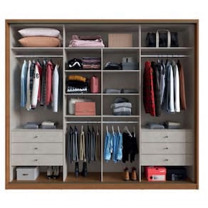 - Possui 2 portas de correr e 8 prateleiras divididas entre os dois lados do roupeiro.