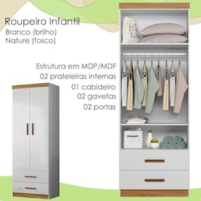 Roupeiro Infantil 2 Portas 2 Gavetas 9100 Branco Nature Plla Branco Nature