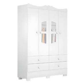 Mamãe chegou a hora de escolher o guarda roupa para o quarto do bebê? Apresentamos mais esse lindo modelo Guarda Roupa Infantil New Cristal com 4 portas e 4 gavetas, apresenta tudo o que você vai precisar para deixar as roupas e acessórios organizados.
