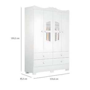 Características: Marca: Tuboarte 100 MDF Pés em PVC Corrediças metálicas Cabideiro em alumínio Acabamento em Pintura: Alto Brilho Material MDF Quantidade de Portas: 4 Porta Quantidade de Gavetas: 4 Gavetas