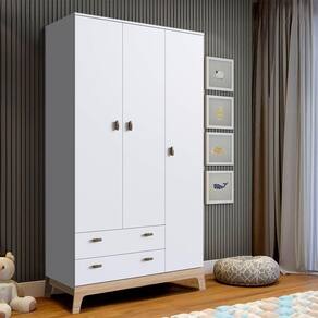 O Guarda Roupas 03 Portas e 02 Gavetas Itapuã com Branco Linha Favo de Marrom da Completa Móveis é versátil, prática e elegante, com características que a destacam. Ideal para o quarto do seu bebê. Gavetas e prateleiras que facilitam e otimizam o espaço e aconchego para o ambiente, assim, acomodando e organizando as roupinhas e acessórios do dia a dia. Cabideiro incluso. Produto em MDP com corrediças metálicas e puxadores plásticos.