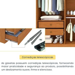 gavetas internas com puxadores;
