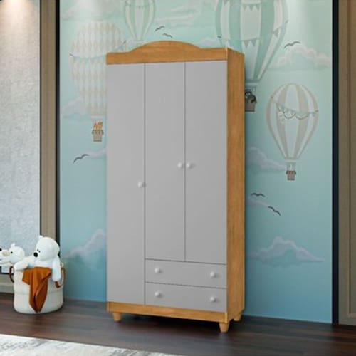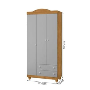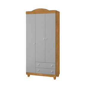 Roupeiro Lara 3 Portas E 2 Gavetas Em Mdf Nature / Cinza