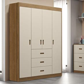 Roupeiro Livia 4 Portas 2 Gavetas Off White/Carvalho Móveis Canaã