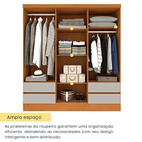 O Roupeiro Oregon é a escolha perfeita para quem precisa de mais espaço sem abrir mão da elegância. Com um design moderno e funcional, ele oferece ampla capacidade de armazenamento, ideal para manter roupas, calçados e acessórios sempre organizados.