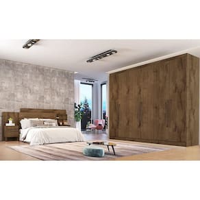 Roupeiro elegante com 6 portas de bater, com dobradiças modernas e reforçadas. Gavetas internas com corrediças telescópicas. Possui puxadores em madeira, excelente espaço interno, Cabideiro em alumínio.
