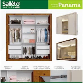 Este Roupeiro vai lhe proporcionar um amplo e bem dividido espaço interno para que você possa acomodar e organizar os mais diversos itens. Com estrutura em MDP e revestimento em pintura UV, este Roupeiro dispõe de muita estabilidade e resistência. O Guarda-Roupa Panamá possui um visual sofisticado e elegante, com porta de correr, possível de combinar com inúmeras decorações. , este armário dispõe de um espaço extenso com repartições bem planejadas para que caiba tudo o que você precisa para manter o ambiente externo organizado e aconchegante. O Roupeiro Panamá é a escolha para sua casa!