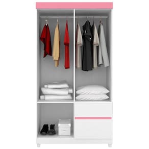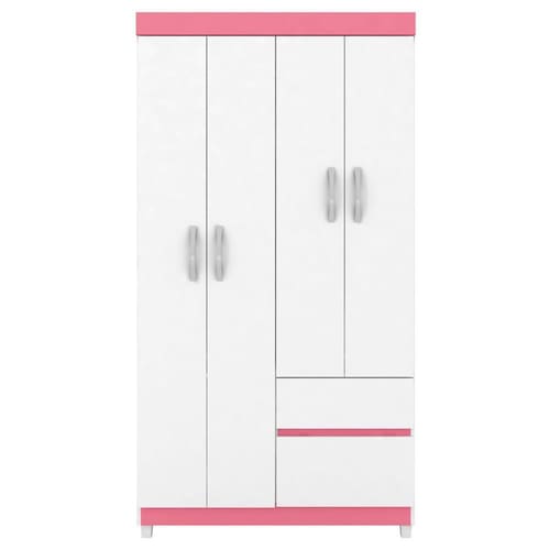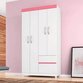 Caracteristicas: Tipo: Solteiro Tipo de porta: Bater Quantidade de portas: 4 Quantidade de gavetas: 2 Quantidade de cabideiros: 2 Sapateira: Sim Espelho: Nao Gaveta com chave: Nao Tipo de corredicas: Metalicas Material da estrutura: MDP Pes: PVC Acabamento: Pintura UV