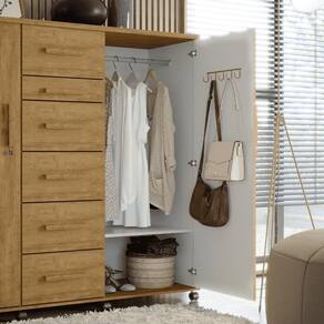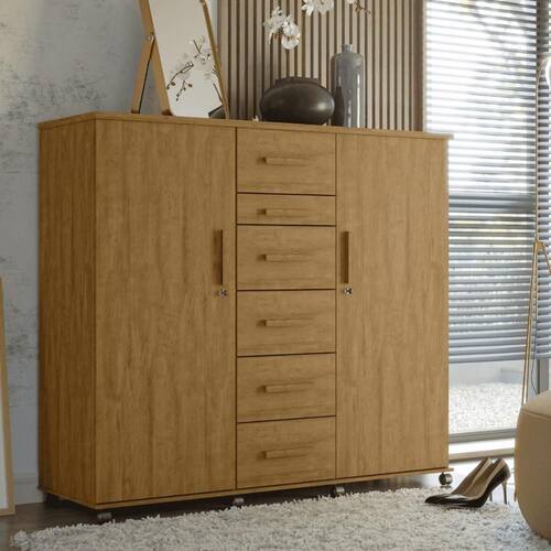 A cômoda grande além de prática e funcional, vai deixar seu quarto super organizado. Possui 2 portas e 6 gavetas e prateleiras para usar como sapateira.