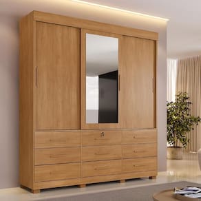 Internamente, conta com 9 gavetas com corrediças telescópicas, que proporcionam abertura leve e silenciosa sendo 1 delas com chave, ideal para guardar itens pessoais com . Possui ainda 4 prateleiras bem distribuídas e cabideiro em alumínio, perfeito para acomodar roupas de forma organizada.