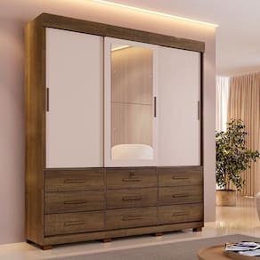 Roupeiro Turim 3 Portas e 9 Gavetas Imbuía/Off - Tudo de Móveis