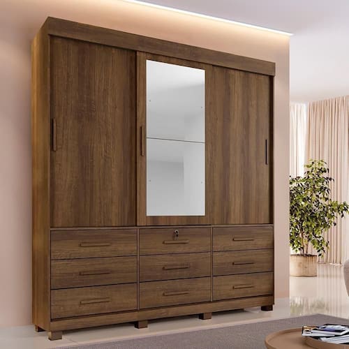 Composto por 3 portas de correr, proporciona melhor aproveitamento de espaço no ambiente. Seu sistema de trilho em alumínio com proteção antiqueda garante deslizamento suave e , além de um toque de modernidade.