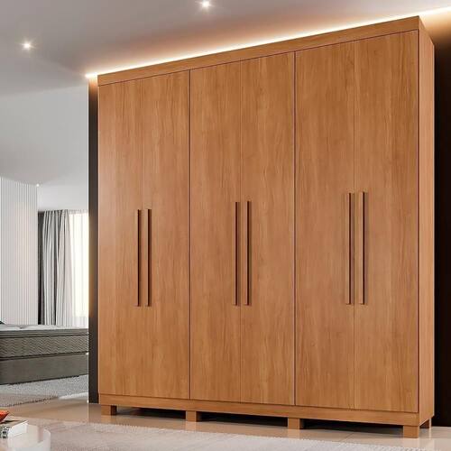 O Roupeiro Verona foi desenvolvido para oferecer praticidade e durabilidade ao seu dia a dia. Produzido em chapa de 15 mm, proporciona estrutura robusta e maior vida útil ao móvel. Conta com 6 portas, 3 gavetas com corrediças telescópicas, 7 prateleiras bem distribuídas e cabideiro em alumínio, ideal para manter roupas e acessórios sempre organizados.