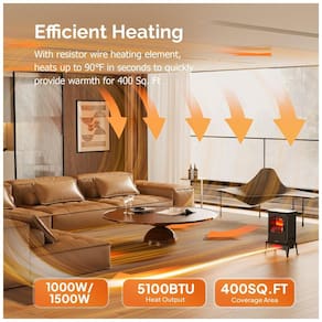 PROTEÇÃO DE SEGURANÇA O aquecedor da lareira é projetado com proteção contra superaquecimento e tombamento. Ele desliga automaticamente quando fica muito quente ou quando tomba. EFEITO DE CHAMA REALISTA O recuperador de calor tem efeito de chama realista. Não só vai aquecer o seu quarto, mas também encantar os seus olhos. TEMPERATURA AJUSTÁVEL A temperatura do aquecedor do fogão pode ser ajustada para atender às suas necessidades específicas, girando o botão da lareira. E é projetado com 2 configurações de calor, 1000W ou 1500W. FÁCIL DE USAR O aquecedor de ambiente possui botões para ligar, desligar o efeito de chama e o modo de aquecimento selecionado. E você pode ajustar a temperatura simplesmente ajustando o botão do aquecedor