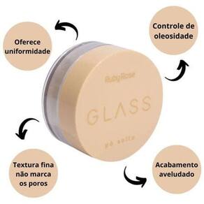 Pó facial solto com textura fina e acabamento aveludado. Ruby Rose Glass controla oleosidade deixando a pele matte natural.