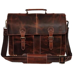 Importado DIMENSÕES 16 x 11 x 5 polegadas, 40 x 27 x . A bolsa tem um amplo espaço para guardar seus Macbooks, Chromebooks e Laptops favoritos com até 15,6 polegadas, de tamanho. COURO DE BÚFALO ROBUSTO REAL 100 , não PU ou falso, mas natural, bonito e feito à mão esfregada com óleo e desgastada, esta bolsa melhora com o tempo e cheira muito bem TERNOS PARA EMPRESAS OU CASUAIS tem aquele visual de pasta de couro difícil de conseguir, embora seja urbano e moderno com fivelas e acessórios de latão, forro e costura resistentes e zíperes YKK AJUSTES PARA O CONFORTO para aquelas viagens longas, a alça de ombro nesta bolsa de couro para laptop é totalmente ajustável há também um fechamento com zíper acima do compartimento 2 1 para manter as coisas seguras enquanto em movimento ACESSO RÁPIDO ÀS SUAS COISAS organize se facilmente com 2 1 compartimentos, bolso para telefone, porta cartões, 1 bolso de segurança interno com zíper, 1 bolso externo com zíper e 2 bolsos externos de acesso rápido ideal para pequenos laptops e tablets Marca: Não Informado