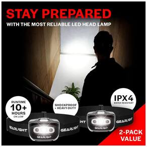 Super Bright Estas poderosas luzes de campismo de LED mãos livres geram um feixe brilhante e duradouro com a cor e definição da luz do dia. Eles ainda têm um tempo de execução de até 10 horas na configuração baixa. Conforto ajustável A faixa de cabeça removível, lavável e ajustável neste farol de LED se adapta confortavelmente a adultos e crianças. Pesando apenas 88 mL com baterias, é o farol ideal para aventureiros ao ar livre. Design versátil nossos faróis premium são projetados com uma cabeça ajustável de 45 graus para direcionar a luz exatamente onde você precisa. Escolha entre 7 modos de iluminação diferentes, de estroboscópio branco a feixe vermelho para segurança. Resistente às intempéries Resistente à água e à prova de choque, a lanterna frontal S500 é adequada para chuva ou neve, dentro ou fora de casa. Adicione o ao topo da sua lista de acessórios para corrida, caminhada e acampamento Value Pack Cada pedido contém 2 lâmpadas S500 GearLight pilhas AAA não incluídas. Guarde um no seu carro, mantenha um em casa ou presenteie um a um amigo ou membro da família Marca: Não Informado