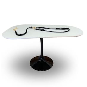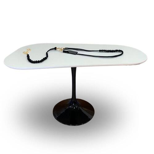 Descrição Saarinen de Jantar Tulipa Organica 140x90 Base Preta Tampo Branco