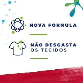Sua fórmula, com pó ultrafino de rápida dissolução na lavagem de roupa, remove as manchas de primeira, sem desgastar os tecidos e ainda cuida das cores pretas.