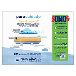 O Sabão em Pó OMO Puro Cuidado foi especialmente formulado para cuidar das roupas sem agredir as peles mais delicadas. Avaliada por pediatras, sua fórmula é hipoalergênica e extra suave, respeita as peles mais delicadas enquanto combate as manchas mais profundas. É perfeito para lavar as roupinhas do seu bebê. O lava roupas OMO Puro Cuidado é imbatível nas manchas da introdução alimentar* e cuida do meio ambiente, pois sua fórmula contém ingredientes biodegradáveis e não possui fosfato, ajudando a preservar rios e oceanos, além de economizar água, uma vez que precisa de apenas 1 enxágue. Além disso, possui ativo concentrado, tecnologia que cuida do planeta. Menos CO, menos poluição. Por isso, apenas meia xícara lava uma máquina cheia. Faça o descarte consciente. Quando você escolhe OMO, você escolhe um mundo melhor. Juntos, sOMOs a transformação positiva para o meio ambiente. Seu uso é recomendado por Brastemp e Consul. Para saber mais sobre a linha de produtos OMO, OMO Tira Manchas e OMO Desinfetantes, acesse o site. Mantenha o produto fora do alcance de crianças e dos animais domésticos. Leia o rótulo antes de usar o produto.