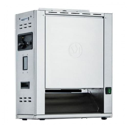 Experimente a eficiência e qualidade superior do Tostador Vertical de Contato Dual Lane CTDEMAX da Série Optimum da Saber King by Prince Castle. Com um corpo e cinta transportadora em aço inoxidável robusto e um avançado sistema de compressão, este equipamento compacto e inovador é projetado para tostar até 2.400 pães por hora, ideal para cozinhas comerciais que exigem alta produtividade em espaços limitados.