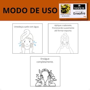 Desenvolvido com enxofre triplamente filtrado o Sabonete de Enxofre da Tropical Cosméticos é eficaz no tratamento de cravos e espinhas, proporciona uma limpeza profunda sem causar ressecamento da pele, reduzindo a oleosidade excessiva. . Indicações:higiene coporal e facial. Modo de Uso Aplicar o produto sobre a pele molhada, friccionando suavemente para obter espuma. Em seguida enxague. . Composição Sucrose sacarose , aqua água , orbignya oleifera seed oil óleo de babaçu , alcohol álcool , glycine soja oil óleo de soja , stearic acid ácido esteárico , tallow glyceride gordura aninal , sodium hydroxide hidróxido de sódio , sulfur enxofre , sodium chloride cloreto de sódio , citric acid 9ácido cítrico , parfum perfume , titanium dioxide dióxido de titânio , BHT butil-hidroxitolueno , CI 19140 corante amarelo . . Precauções Suspender o uso em caso de irritação da pele. Para uso externo apenas. Evitar contato com os olhos. Não aplicar em pele lesionada. Manter fora do alcance das crianças, manter em temperatura ambiente, ao abrigo da luz direta, evitar contato com os olhos. Usar este produto ao mesmo tempo ou após o uso de medicamentos ou outros produtos para acne pode aumentar a secura ou irritação da pele, neste caso, interromper o uso e consultar um médico. . Nº Processo: 25351.034895/2020-89