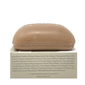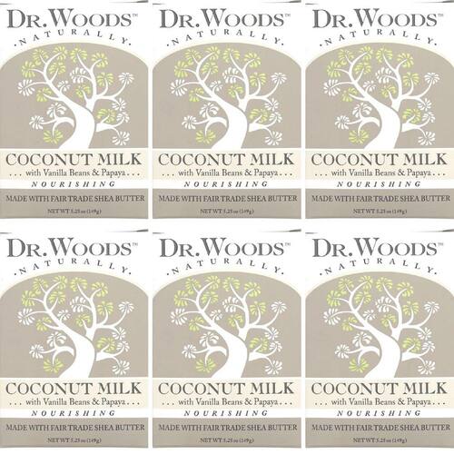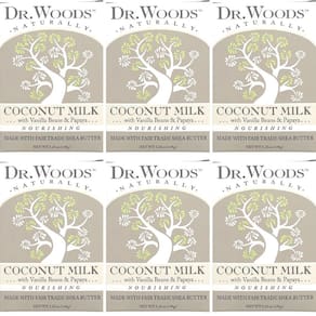 - Dr. Woods O sabonete de leite de coco mistura leite de coco, mamão e favas de baunilha para relaxar seus sentidos, enquanto enriquece sua pele com manteiga de karité orgânica e vitamina E