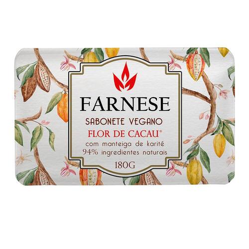 O Sabonete Farnese Vegano Flor De Cacau limpa e cuida gentilmente da sua pele, para uma sensação de pele macia e hidratada durante e após o banho. Possui fórmula rica em óleo vegetal e manteiga de karité que limpa, hidrata e perfuma a pele proporcionando uma experiência incrível no banho. Produto Vegano com 94% de ingredientes naturais. Farnese promove carinho e delicadeza na pele, te envolvendo em uma cremosa e perfumada espuma.
