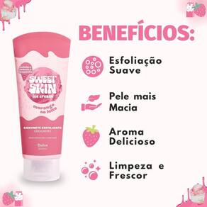 Modo de Uso Aplique o Sabonete Esfoliante Crocante Dailus Sweet Skin Morango ao Leite sobre a pele úmida.