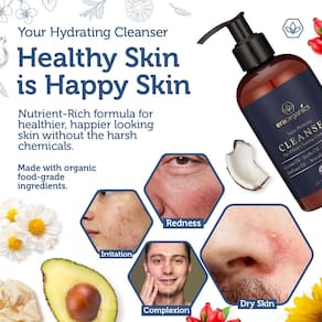- Limpador masculino com uma fórmula extra robusta. Este creme de limpeza hidratante inclui ingredientes calmantes extras para ajudar a reduzir a irritação, combater manchas e poros entupidos. Ingredientes que desafiam a idade ajudam com rugas, linhas finas e envelhecimento prematuro. O sabonete líquido orgânico perfeito para homens e mulheres.