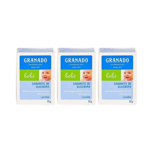 Na compra deste kit será enviado 03 unidades do sabonete granado baby 90g lavanda cada