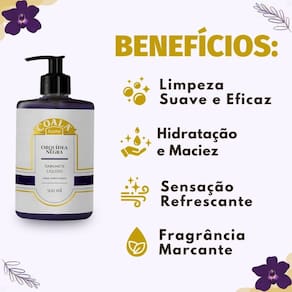 Sua fórmula exclusiva, enriquecida com o precioso extrato de orquídea, oferece uma notável sensação de pele macia, hidratada e delicadamente perfumada, tornando-o perfeito para o uso diário nas mãos, no corpo e no rosto. O Sabonete Líquido Coala Home Orquídea Negra não é apenas um produto de limpeza, mas sim a escolha ideal para adicionar um toque de elegância, frescor e bem-estar revigorante ao seu dia a dia.
