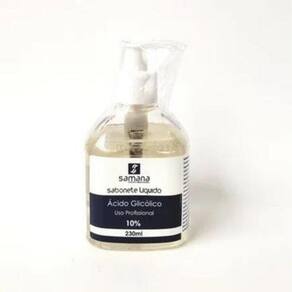 Sabonete Liquido De Ácido Glicólico 10% 230MlSabonete que facilita a indução do ativo, aumento da capacidade de renovação celular proporcionando seu afinamento.Ação queratolítica e iluminadora. Prepara a pele para diferentes tratamentos, sendo parte essencial do processo de higienização.Indicação: peles normais, mistas, lipídicas e maduras.Melhora da acne comedogênica i fácil aplicação i ação esfolianteAtivos:- ácido glicólico a 10%Modo de usar: aplicar em movimentos circulares sobre a região escolhida, deixar agir por 2 minutos e enxaguar com agua. Não aplicar nas palpebras, ao redor dos olhos e nos cantos externos do nariz e da boca.Rendimento: 80 aplicaçõesPrecauções: uso externo. Manter fora do alcance de crianças e em local fresco. Evitar contato com os olhos. Enxaguar imediatamente a pele após aplicação. Não insistir no uso continuo, caso ocorra algum efeito indesejável. Durante a primeira semana de uso, aplique pequenas quantidades do produto, em dias alternados.Uma leve sensação de ardor, pinicamento ou ressecamento da pele poderá ser observada nas primeiras aplicações.