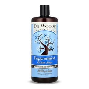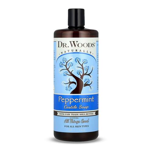 Dr. Woods Sabonete líquido de castela de hortelã-pimenta – sabonete de castela com óleo de hortelã-pimenta puro, sabonete corporal para homens e mulheres, contém manteiga de karité orgânica, limpador