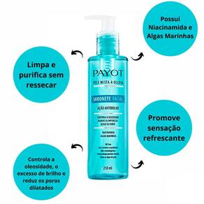 O Sabonete Líquido Facial Payot Ação Antibrilho 210ml é o aliado perfeito para quem busca uma pele limpa e equilibrada, especialmente desenvolvido para atender às necessidades da pele mista e oleosa. Com uma fórmula avançada, este produto proporciona uma limpeza profunda, removendo impurezas, excesso de oleosidade e resíduos de maquiagem, sem comprometer a hidratação natural da pele.